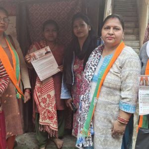 Women workers of BJP Mahila Morcha conducted a door-to-door public outreach program, engaging with residents and...