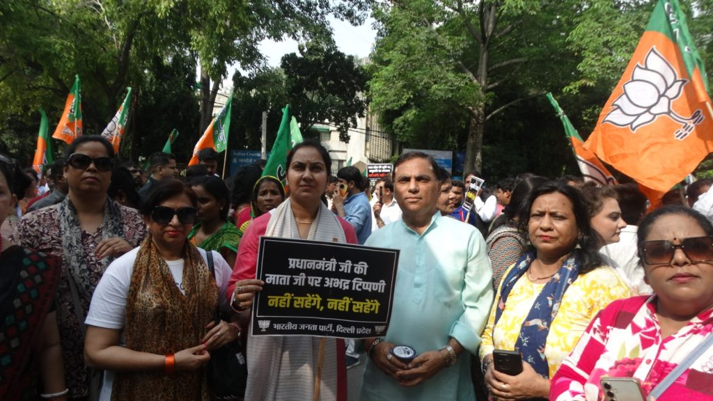 Joined the protest led by Delhi BJP President Shri Virendra Sachdeva ji against the indecent remarks made by Congress towards the late mother of Hon’ble Prime Minister Shri Narendra Modi ji. The protest strongly condemned this shameful mindset of Congress, reaffirming our respect towards the Prime Minister and his family.