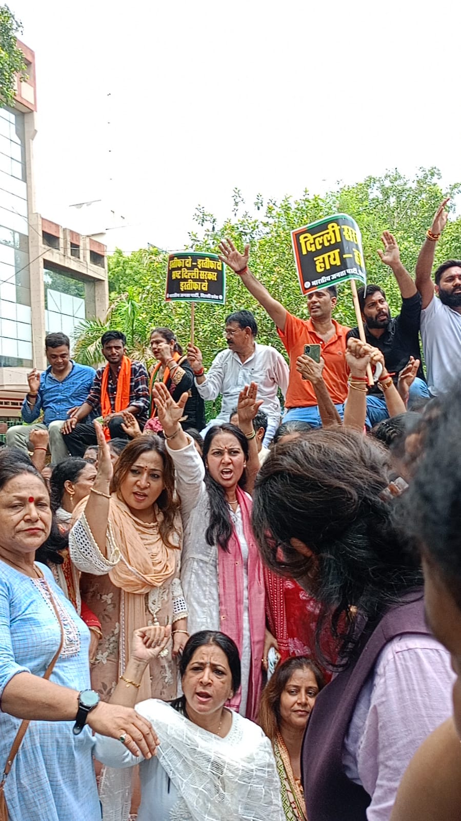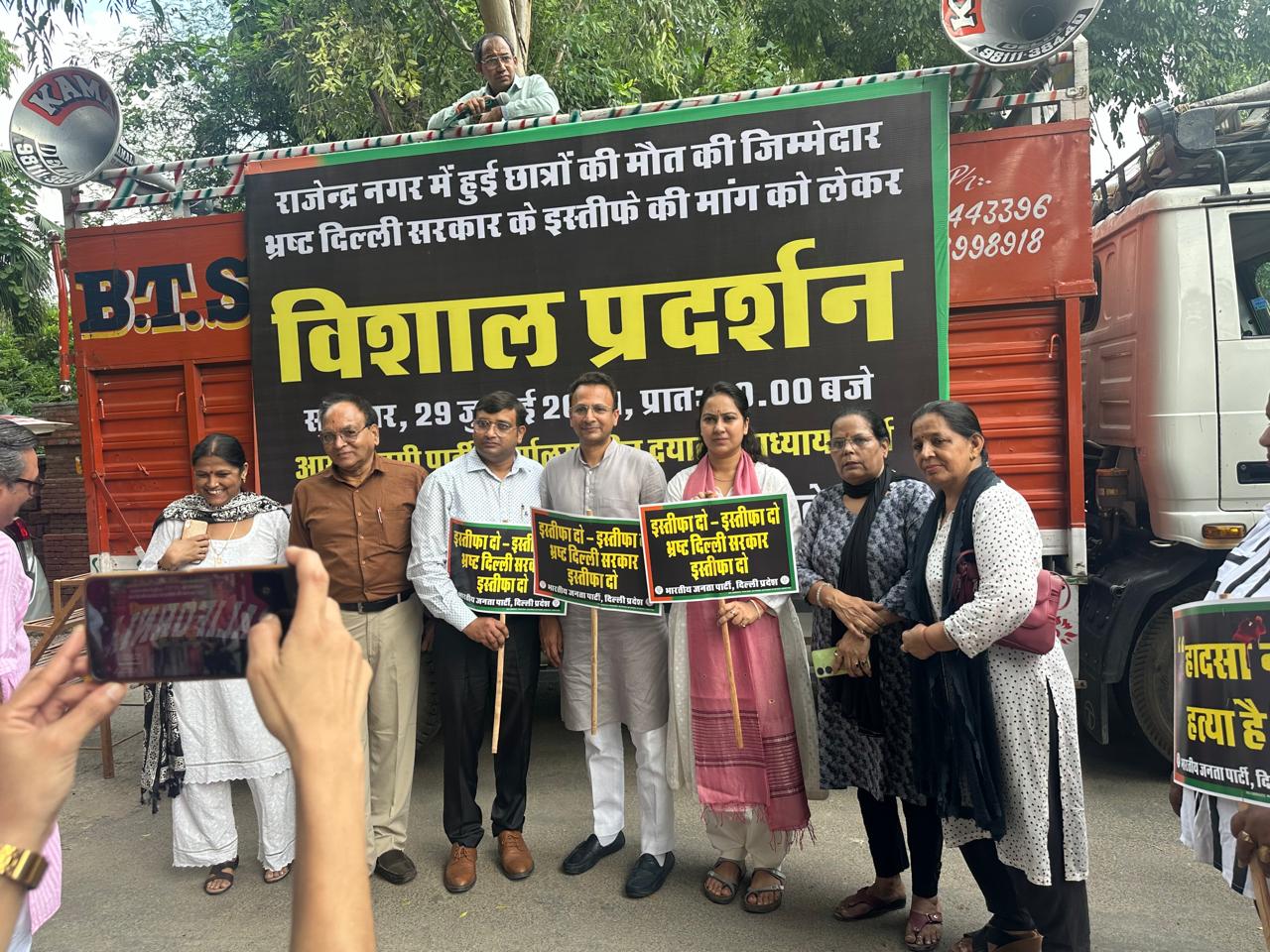 Joined a massive protest organized by BJP Delhi demanding the resignation of the corrupt Delhi government responsible for the tragic deaths of students in Rajendra Nagar.